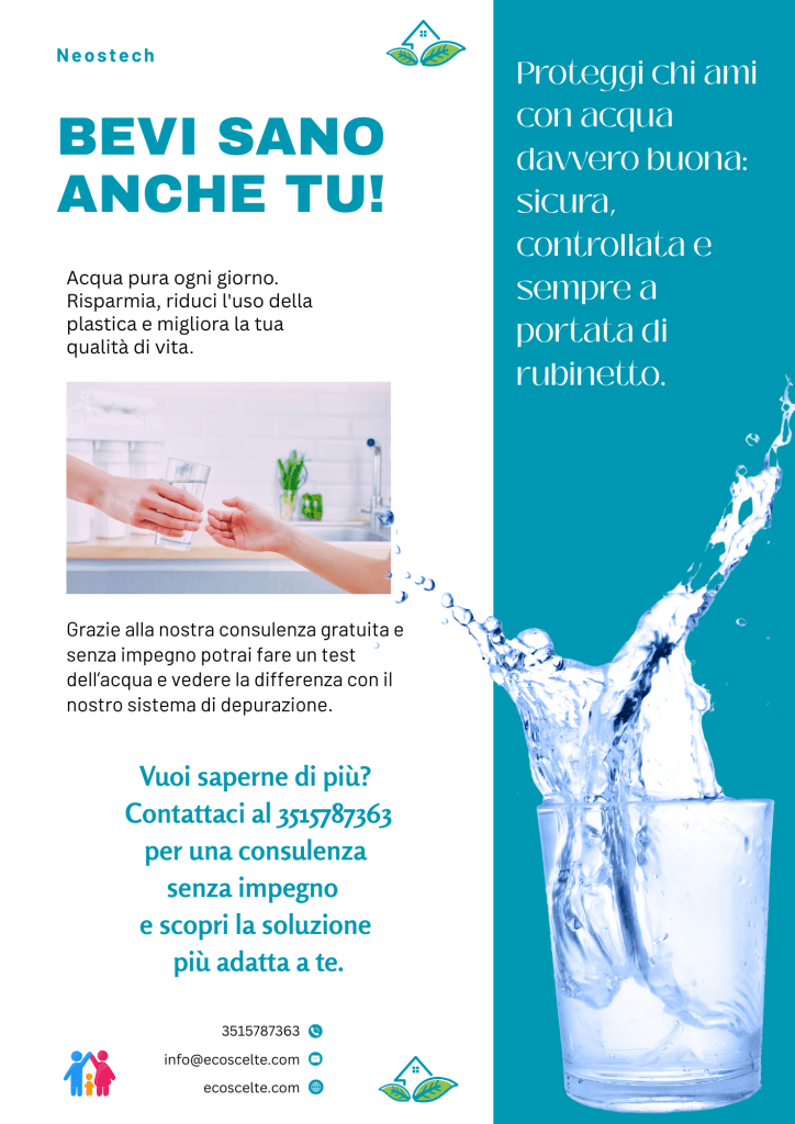 Ho fatto installare il depuratore nella mia cucina e in questo modo oltre ad un risparmio effettivo, non dovendo più acquistare l’acqua al supermercato, ho abolito il consumo di plastica e finalmente ho la sicurezza di bere un’acqua davvero pura da utilizzare anche per cucinare.